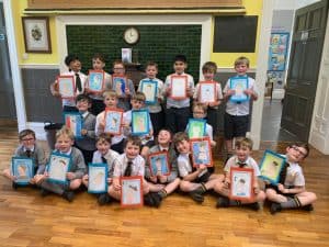 Inchmarlo had a great time celebrating the Queen’s Platinum Jubilee. P1 and P2 made fantastic nature crowns in Forest School, P3 made commemorative gold medallions and got creative using the iPads. The whole school designed and made pop-art corgi bunting and designed new Jubilee-themed stamps. The Jubilee also proved to be a great stimulus for lots of fantastic writing as well. We rounded the week off with a good old-fashioned tea party – the cucumber sandwiches were a great hit!! All the boys received a special Jubille gift to remember the special occasion.