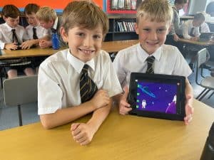 This week the P6 boys participated in a province-wide coding session organised through the Nerve Centre. They coded their own ‘Space Invaders’ game based on Oliver Jeffers space themed trail Our Place in Space. In June the P1 boys visited the Our Place in Space trail on Divis mountain. Both classes absolutely loved their interactive experiences.