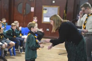 The boys of the Group reported on the Scouting activities from last year including our Gold Duke of Edinburgh’s Award Qualifying Expedition to The Lake District. New Beavers, Cubs, Scouts and Explorers were invested into the Movement while Cubs, Scouts, Explorers and Network were moved on into new Sections. All the boys received badges and awards before the Group trophies were awarded at the end of the evening.