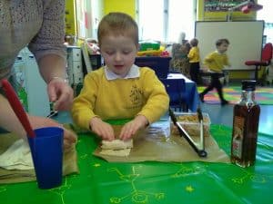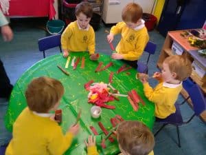 The Pre-Foundation boys learnt about and celebrated Chinese New Year this week. They enjoyed listening to stories and making special playdough which was scented with star anise and cloves, and coloured with red food dye and gold glitter! The boys also had fun getting crafty and creating some colourful dragons. This morning they put their chefs hats on and made spring rolls – yum yum!