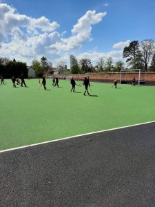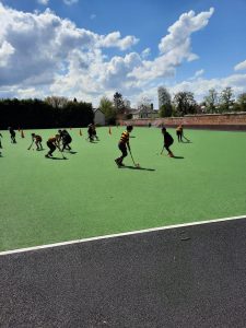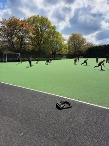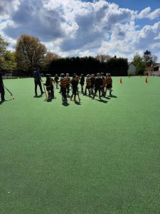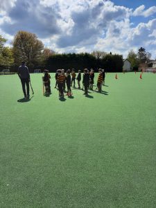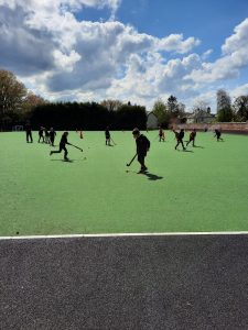P5 enjoying hockey with their teacher Mr Francey and Mr Cleghorne (RBAI).