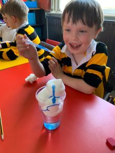 P4 were experimenting with shaving foam and food colouring to explore how clouds work. It was so much fun!