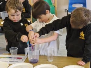 Children conducting fun science experiments at Inchmarlo school.