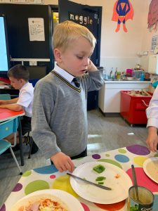 As part of their WAU topic of Pirates P2 wrote their very own pizza recipes using time connectives and bossy verbs. The recipes looked so good that Mr Morrow just had to let the boys have a go and make them!