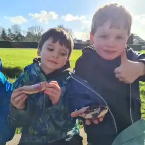 Today in Forest School the Foundation Stage boys had a go at cooking pancakes on a bonfire. We decided it made them taste even better!